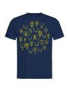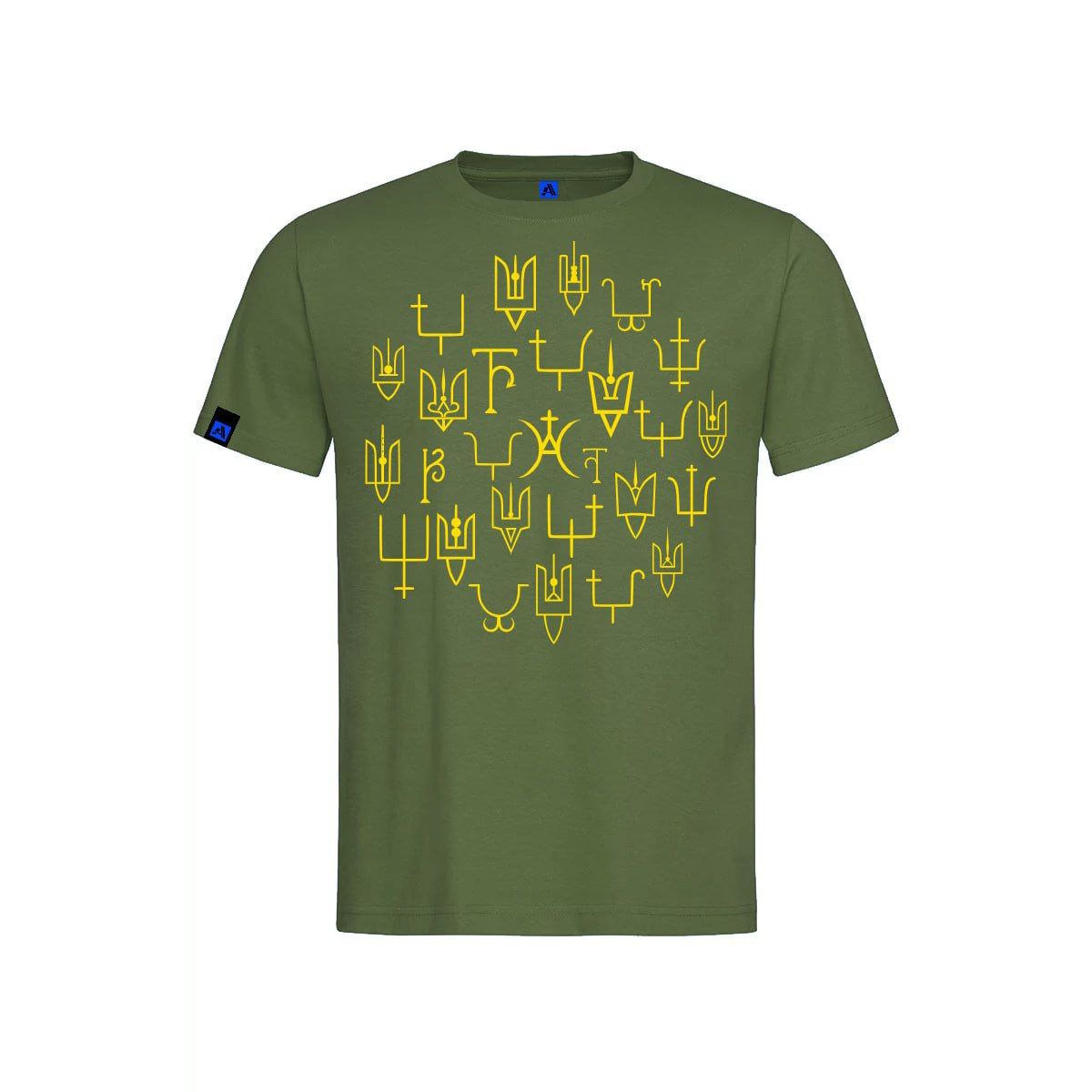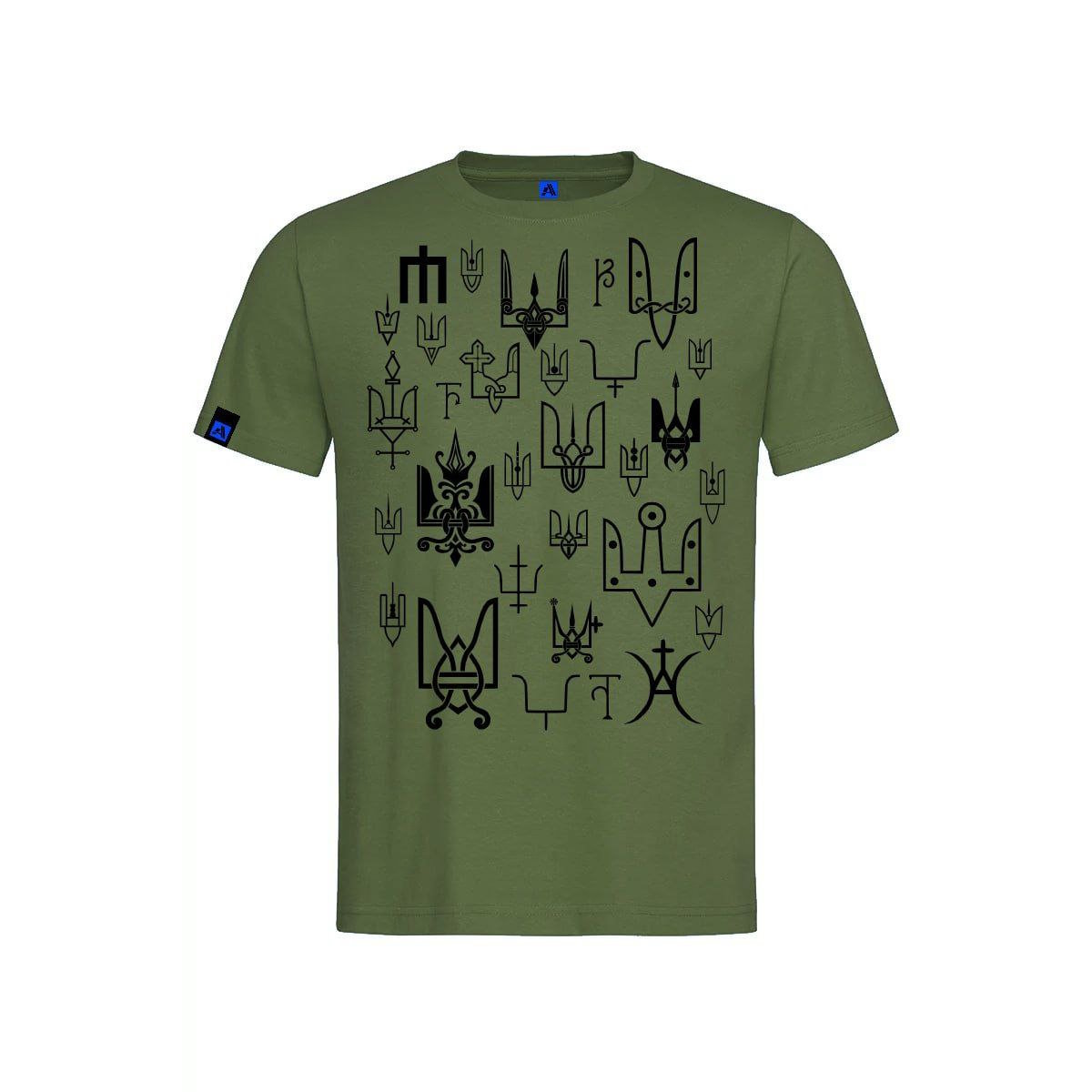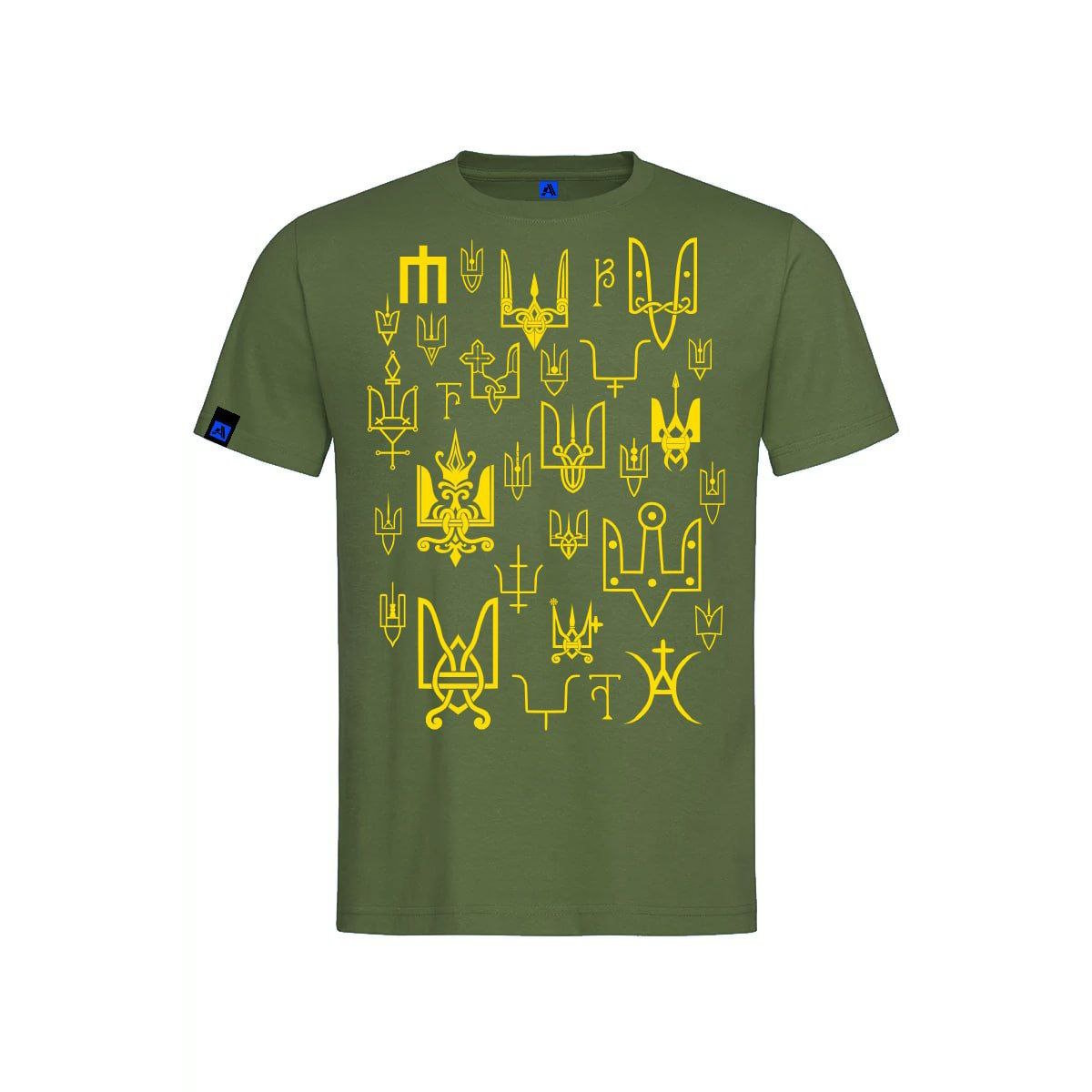 В оформлені футболок використані зображення реальних княжих знаків другої половини 10- середини 13 століття. Княжі знаки були особистими знаками численних представників Київської династії. За доби української середньовічної держави Русь вони відомі за такими назвами: знамено, печать, пʼятно. У кожного князя був свій окремий знак. Проте, його оформлення та графічне виконання могло дещо змінюватись- відповідно до поверхні розміщення, розмірів та відповідно до зразків тогочасної моди, що диктувала створення або «урочистих» зображень на прикрасах, або ж аскетичних графічних форм, якщо йшлось про клейма на посуді. Всі княжі знаки на нашій продукції мають підписи про їх приналежність або ж із вказівкою звідки він походить.