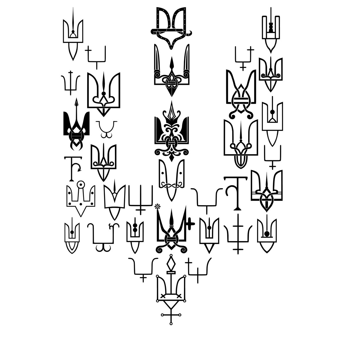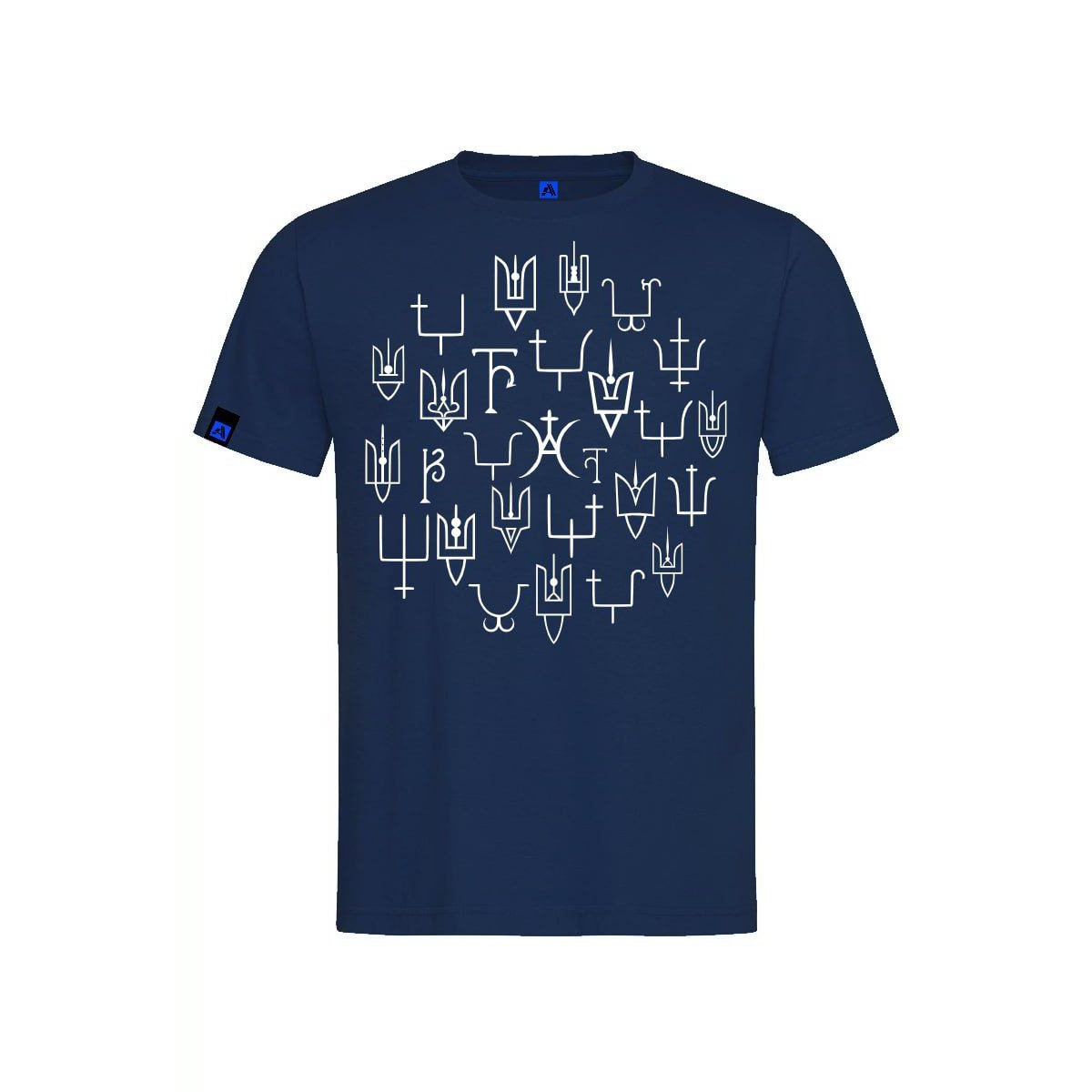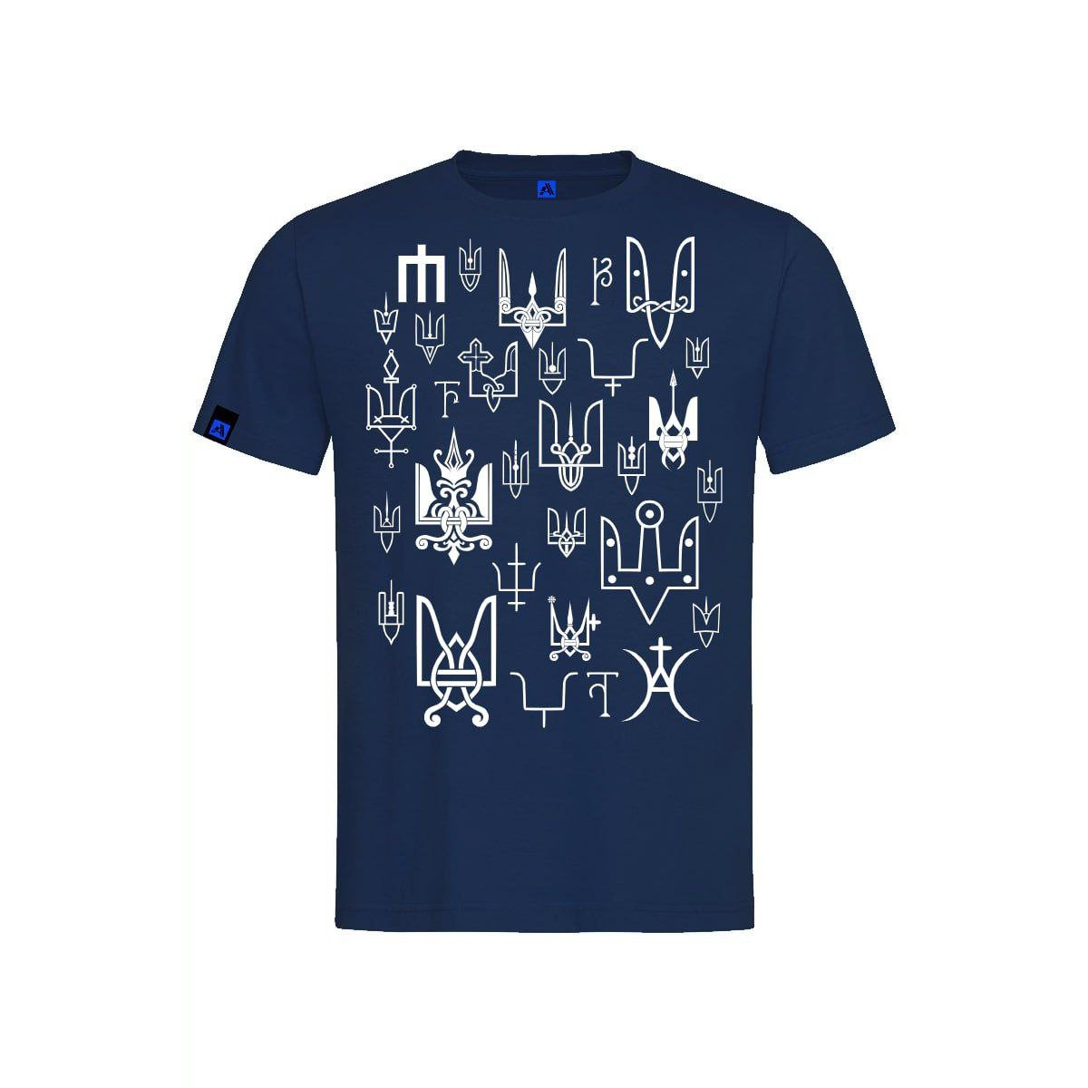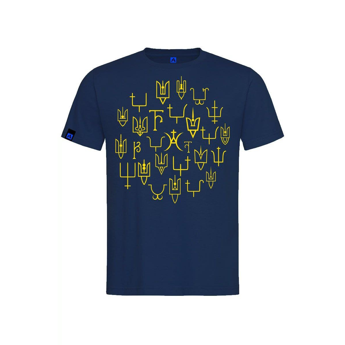 В оформлені футболок використані зображення реальних княжих знаків другої половини 10- середини 13 століття. Княжі знаки були особистими знаками численних представників Київської династії. За доби української середньовічної держави Русь вони відомі за такими назвами: знамено, печать, пʼятно. У кожного князя був свій окремий знак. Проте, його оформлення та графічне виконання могло дещо змінюватись- відповідно до поверхні розміщення, розмірів та відповідно до зразків тогочасної моди, що диктувала створення або «урочистих» зображень на прикрасах, або ж аскетичних графічних форм, якщо йшлось про клейма на посуді. Всі княжі знаки на нашій продукції мають підписи про їх приналежність або ж із вказівкою звідки він походить.